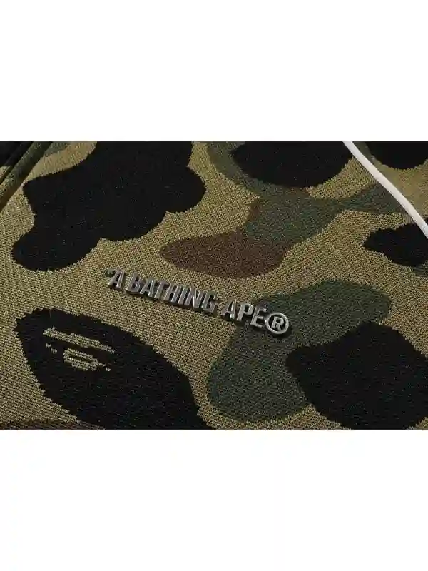 - Sleeves: Highlighted by the iconic “A Bathing Ape” logo and subtle white piping that accentuates the raglan sleeves.