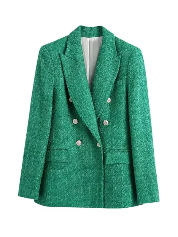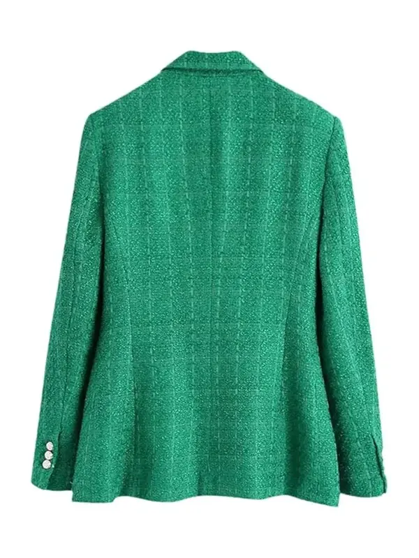 Good Morning America 2026 Lara Spencer Double-Breasted, Peak Lapels Emerald Green Tweed Blazer