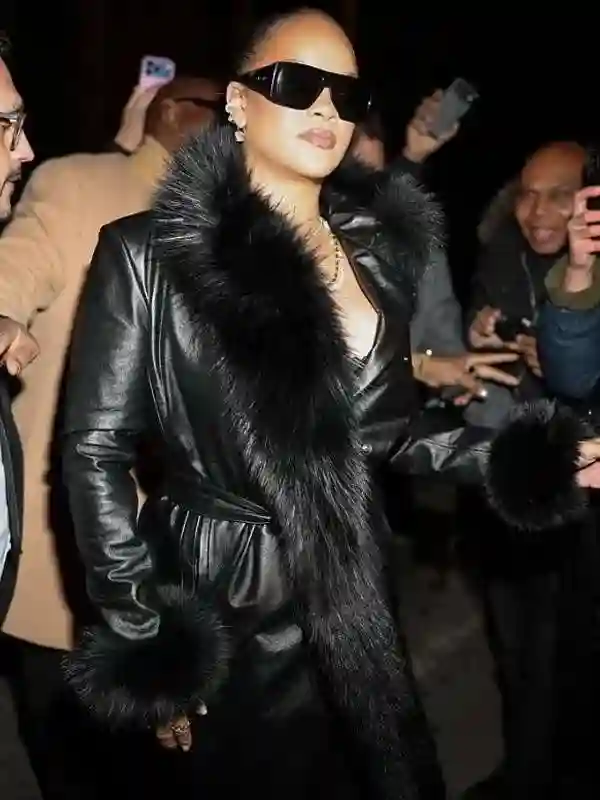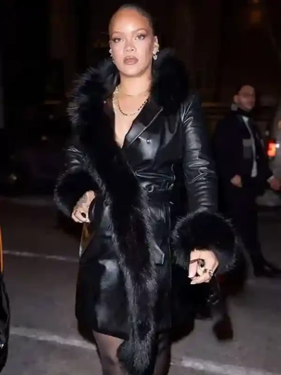For Women Coat NYC 2026 Rihanna Black Leather Trench Coat