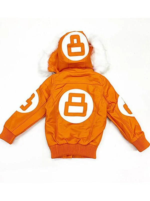 8 Ball Orange Fur Hooded Leather Parka Jacket