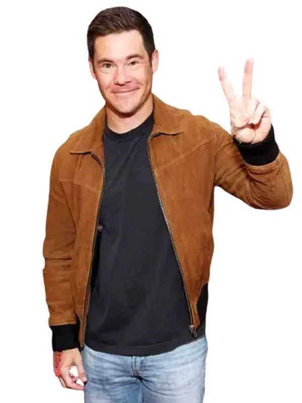 Adam Devine Super Bowl 2026 Brown Suede Jacket