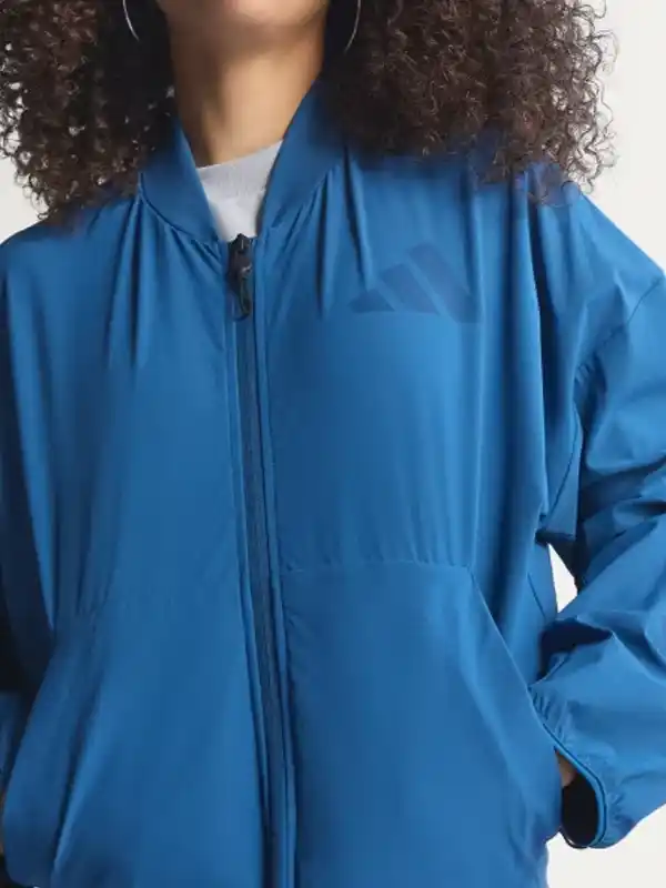 Tailored from premium fabric, the jacket offers a lightweight feel without compromising on durability. The rib-knitted collar, and sleek zipper closure provide a secure fit while maintaining a clean, minimal look that is synonymous with the Adidas aesthetic. Its vibrant blue color is not just eye-catching, but also incredibly easy to style with joggers or denim for a complete street-ready outfit.