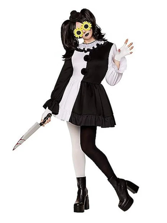 Want to do a scary couples look? This costume can work with the male Art the Clown costume for a scary terrifier couples costume idea. Skip the hassle of finding a good terrifier costume spirit halloween outfit. This is the adult art the clown costume you need. It’s one of the top terrifier costume adults outfits out there. It’s also great for an art the clown couple costume.