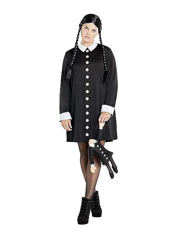 Adult Wednesday Addams Plus Size Black Costume – The Addams Family