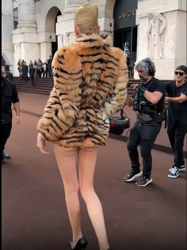 Embrace the Bold Energy of the Runway | Alex Consani Tiger Fur Coat