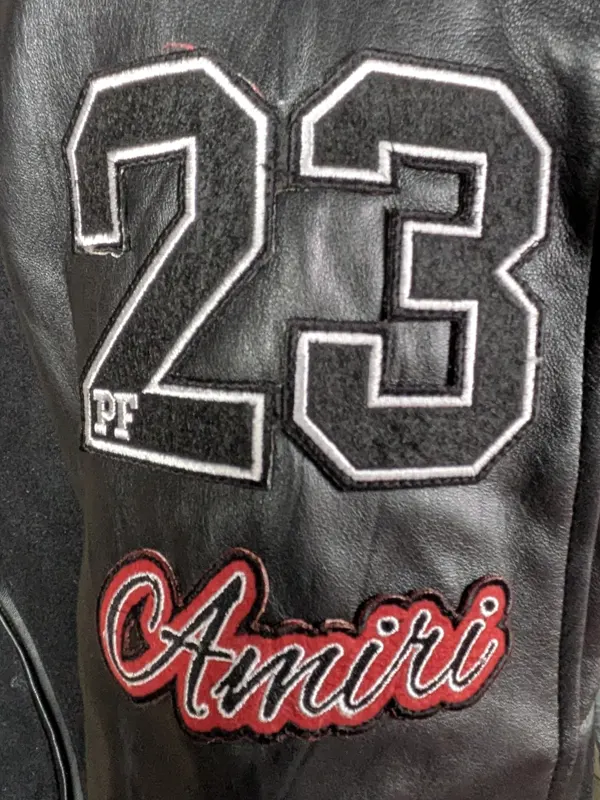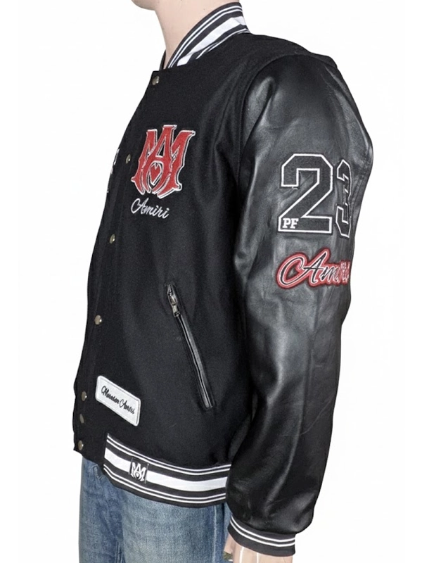 Amiri Logo-Patch Black and Red Varsity Jacket