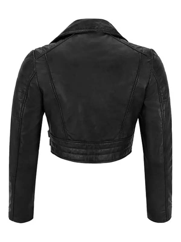 Black Cropped Leather Jacket For Women