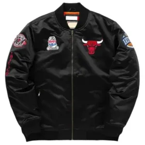 NBA Chicago Bulls Black Full-Zip Satin Bomber Jacket