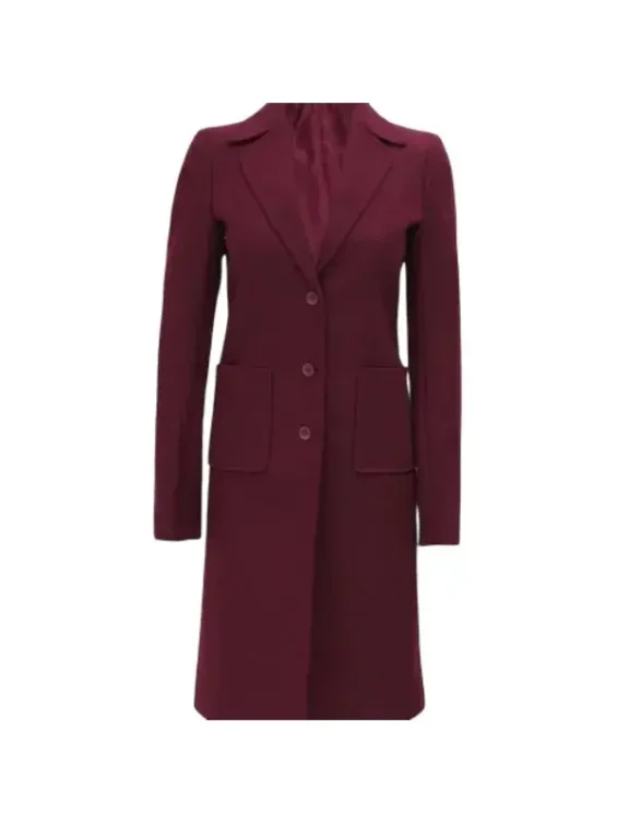 Turn Heads This Winter with the Connie Women’s Maroon Long Wool Overcoat