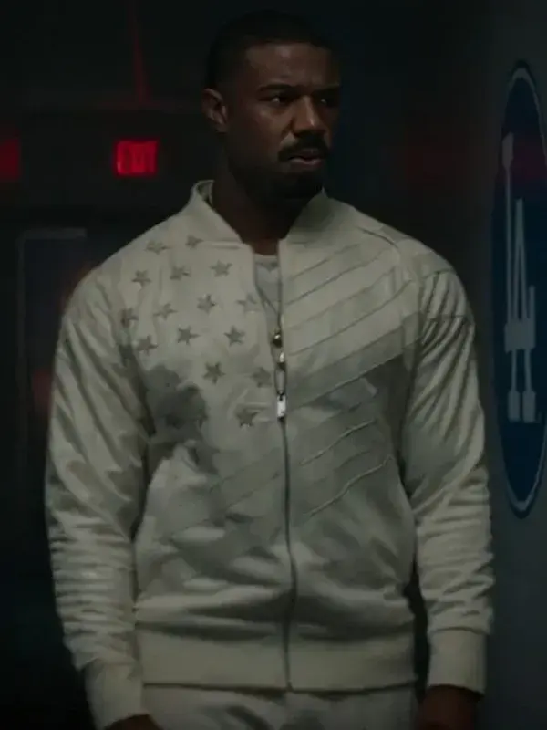 Michael B. Jordan Creed 3 Adonis Creed Stars and White Bomber Jacket For Sale