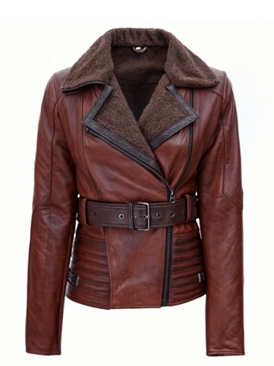 Womens Dark Brown Shearling Leather Jacket