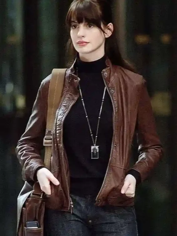 Anne Hathaway The Devil Wears Prada Brown Leather Jacket