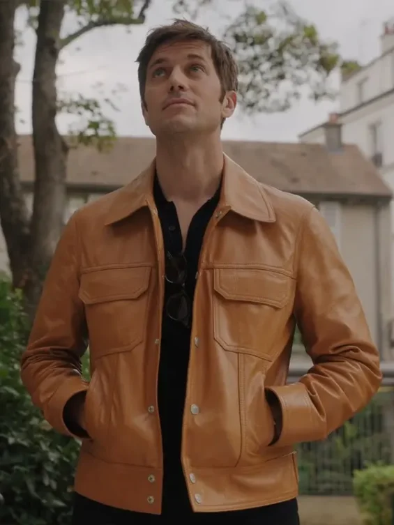 Emily in Paris S03 Gabriel Brown Leather Jacket