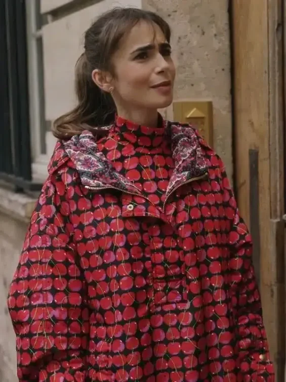 Lily Collins Emily In Paris S03 Emily Cooper Cherries Hooded Jacket
