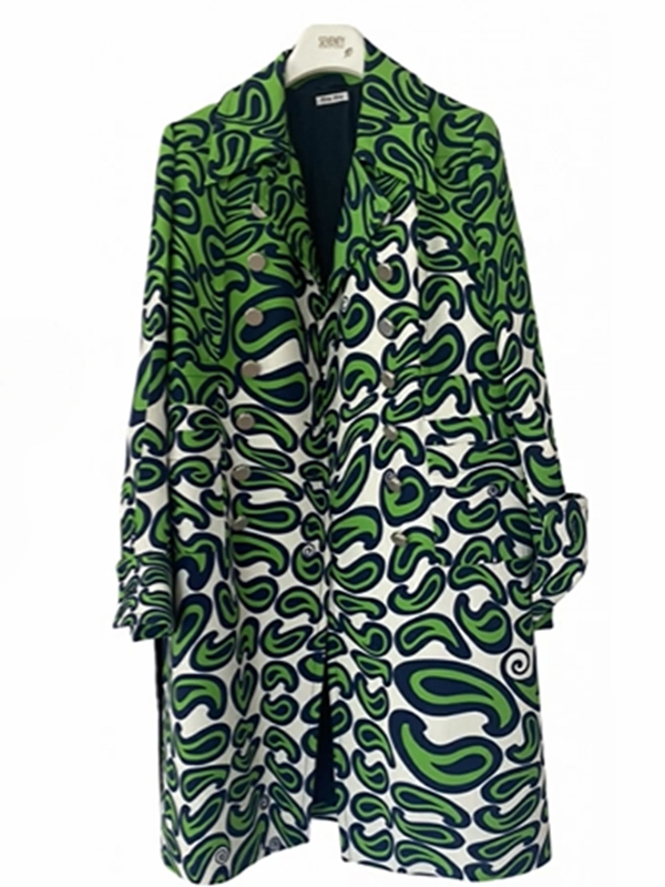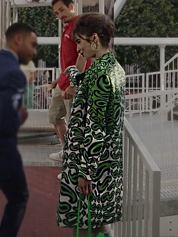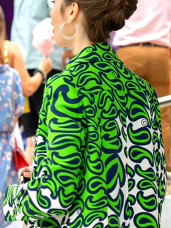 Emily in Paris S03 Lily Collins Green Printed Coat