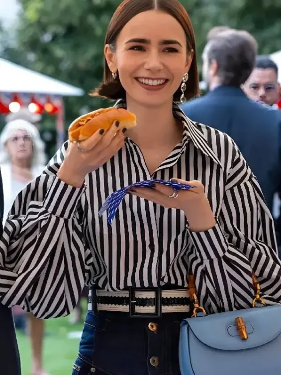 Emily In Paris S5 Lily Collins Striped Puff Sleeve Shirt