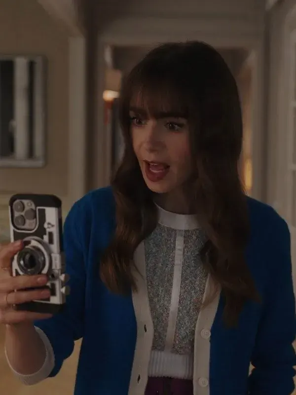 Emily In Paris Season 3 Lily Collins Blue Cardigan