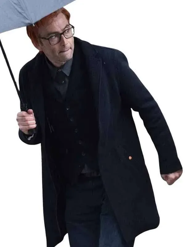 The Good Omens Crowley Coat in Blue Wool Most Iconic TV Series Look | David Tennant Good Omens S03 Crowley Blue Wool Coat