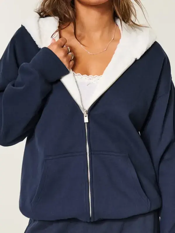The Hollister faux fur-lined hoodie has become a viral sensation for its ability to blend lounge comfort with everyday streetwear. Since the original versions are often unavailable, our curated collection brings back these essential colors so you can stay cozy all season long. It is perfect for layering over a basic tee or pairing with matching joggers for a complete monochromatic look.