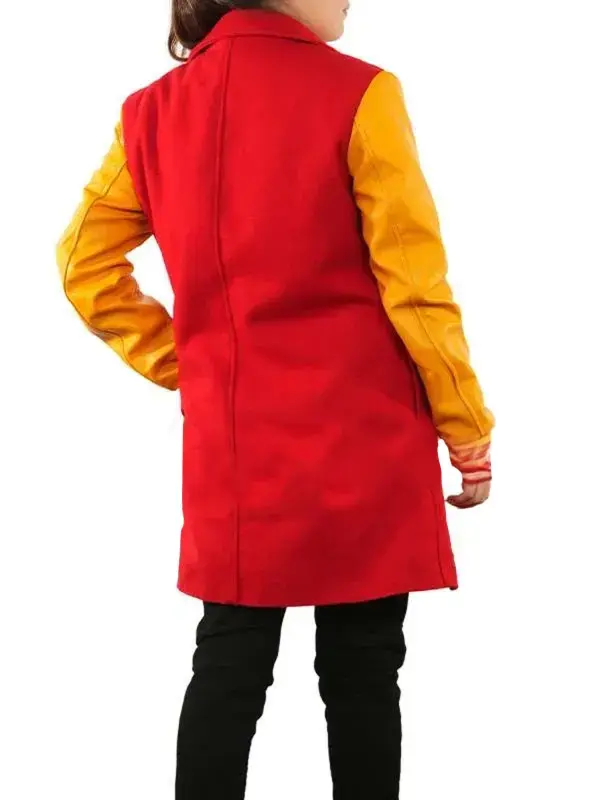 Hunter King Holiday Touchdown A Chiefs Love Story 2024 Alana Higman Red and Yellow Wool Trench Coat