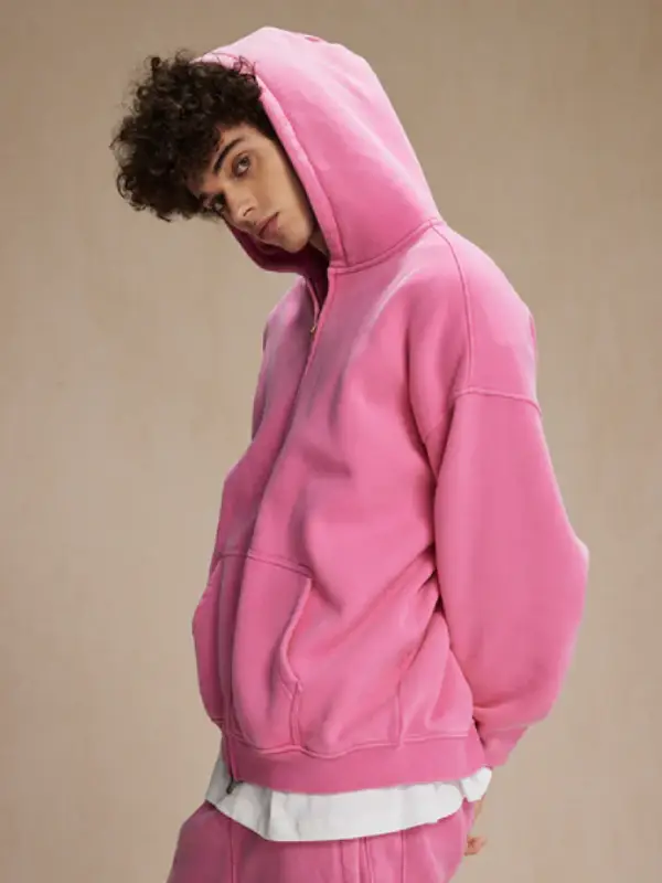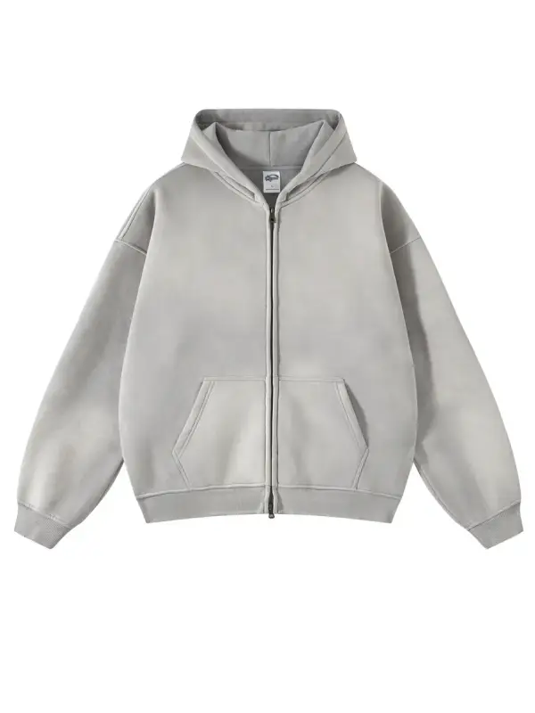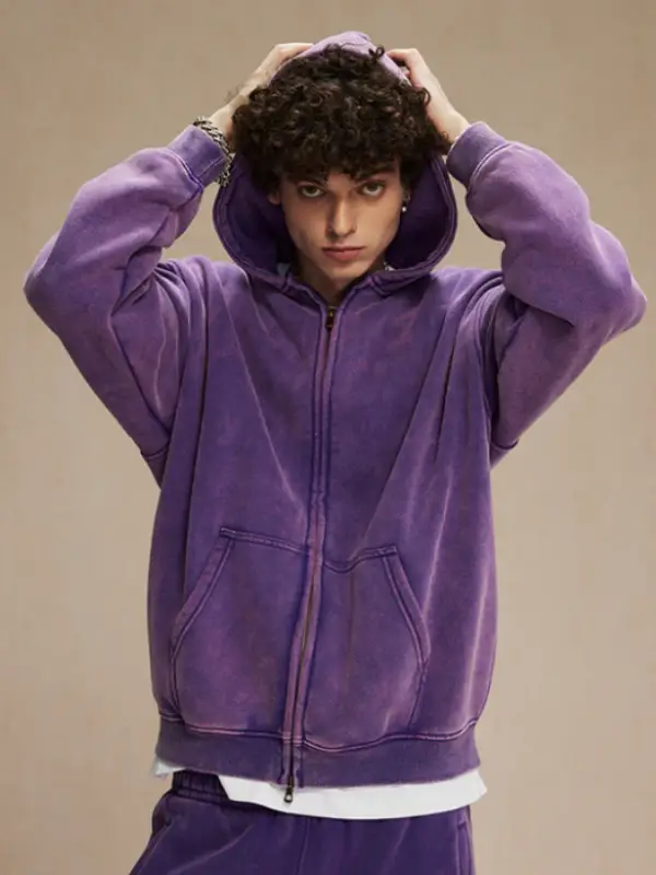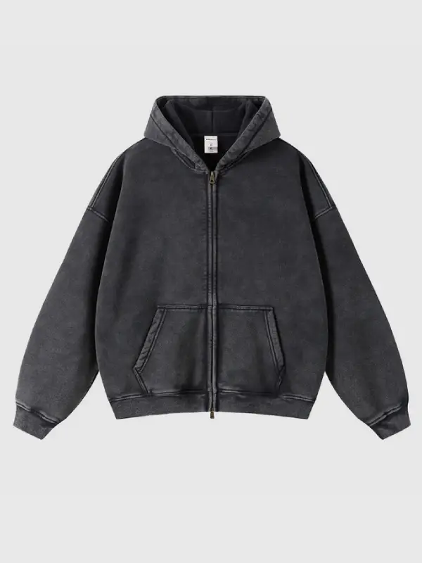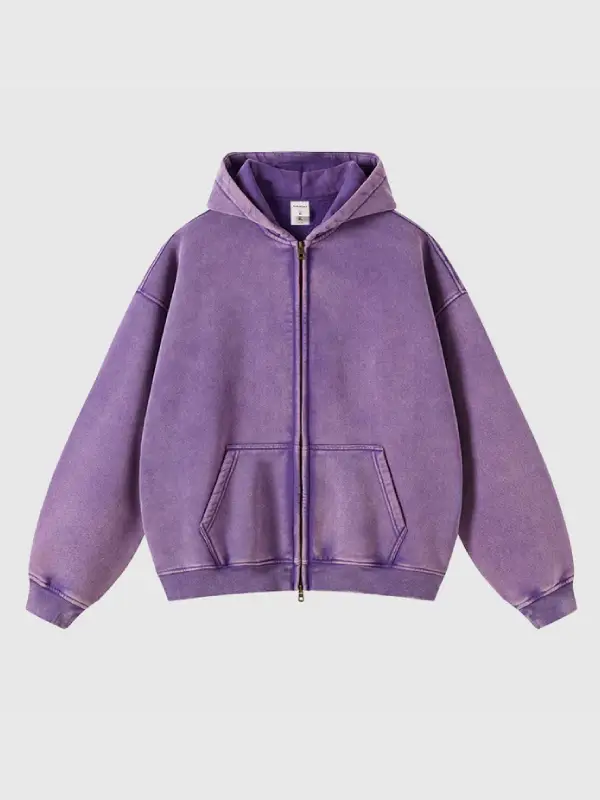 Inflation Washed Distressed Fleece Zip Up Hoodies