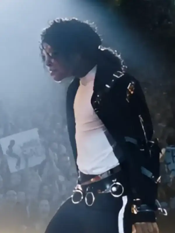 The Jaafar Jackson Inspired Michael Black Leather Pop-Culture | Jaafar Jackson Michael Black Belted Leather Jacket