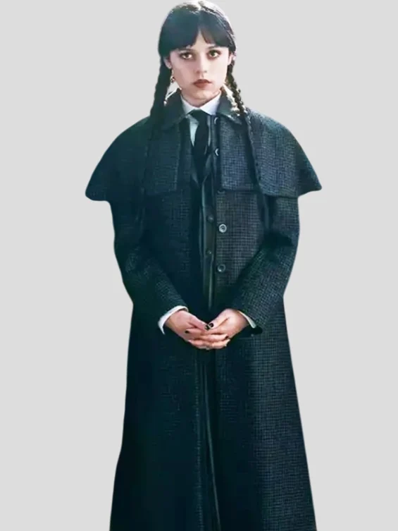 Owning the Jenna Ortega Wednesday Coat means capturing the signature spirit of Wednesday Addams—mysterious, stylish, and unforgettable. It’s the kind of coat that makes you stand out whether you’re strolling through rainy fall streets or attending a themed event. Simple yet striking, it’s a must-have for Wednesday fans and anyone looking to embrace dark elegance with confidence.