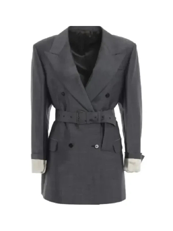 - Closure: Double Breasted Buttoned and Belted Closure