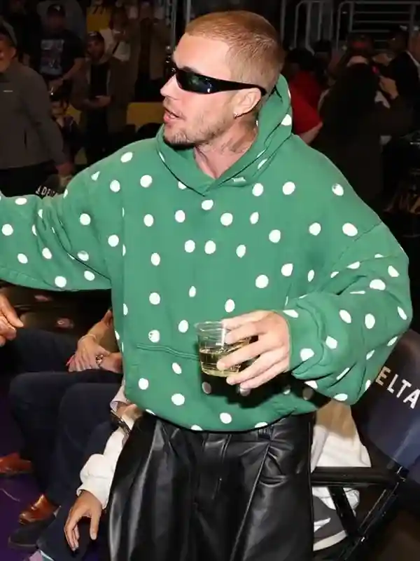 The Justin Bieber Polka Dot Hoodie is a masterclass in playful Celebrity Inspired, directly inspired by the pop icon’s standout look at the 2026 Lakers game. This piece is engineered for the fan who wants to capture that specific 2026 Atlanta Hawks Magic City Hoodie vibe without sacrificing the comfort of a daily staple. Using a premium fleece fabric chassis, this green pullover offers a soft-touch interior that provides consistent thermal comfort in any urban setting.