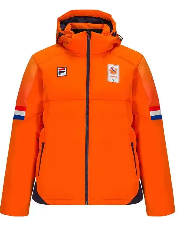 the 2026 winter team netherlands jutta leerdam olympic orange puffer hooded jacket want a team look at the Winter Olympics 2026 Team Italy EA7 Jacket for a wool fabric style instead olympic 2026 team.