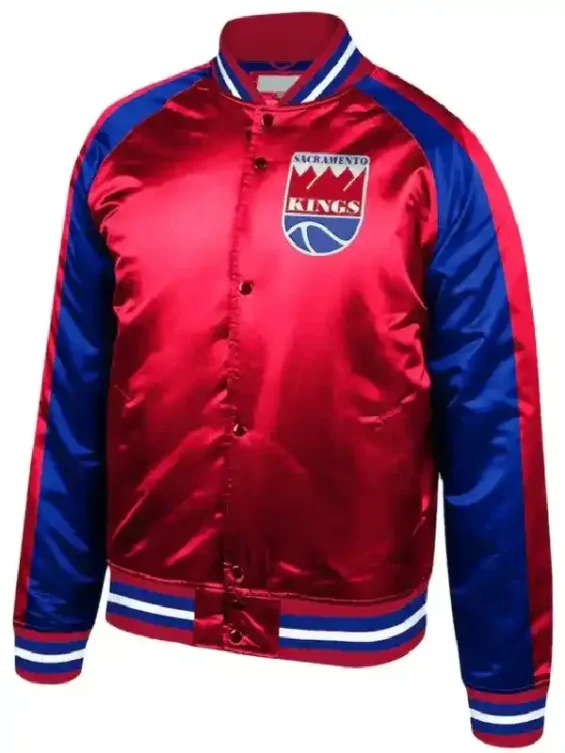 Sporty Colorblock Satin Jacket with Classic Team Style | Sacramento Kings Red and Blue Satin Jacket