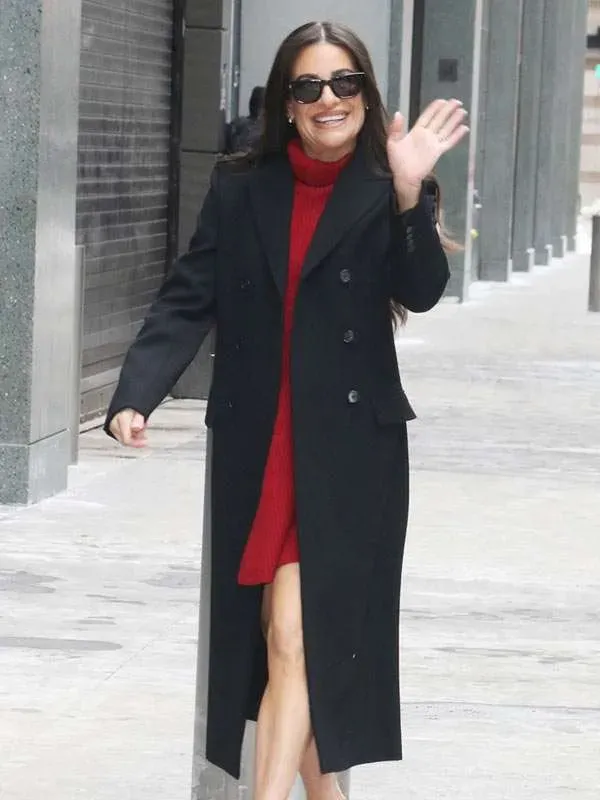 Defining Sophisticated Presence: The Lea Michele Black Wool Coat Architecture