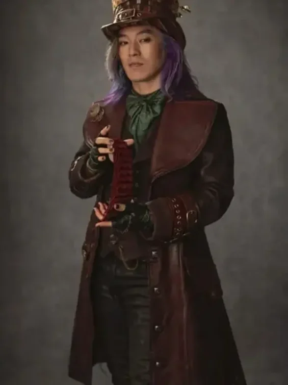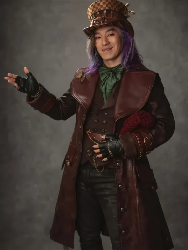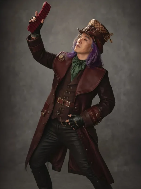 Eccentric Wonderland Aesthetic | The Leonardo Nam Inspired Maroon Silhouette | Maddox Hatter Leather Coat