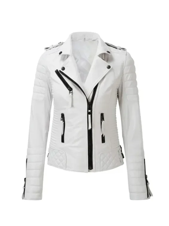 Women’s Magnuson White Leather Biker Jacket For Sale