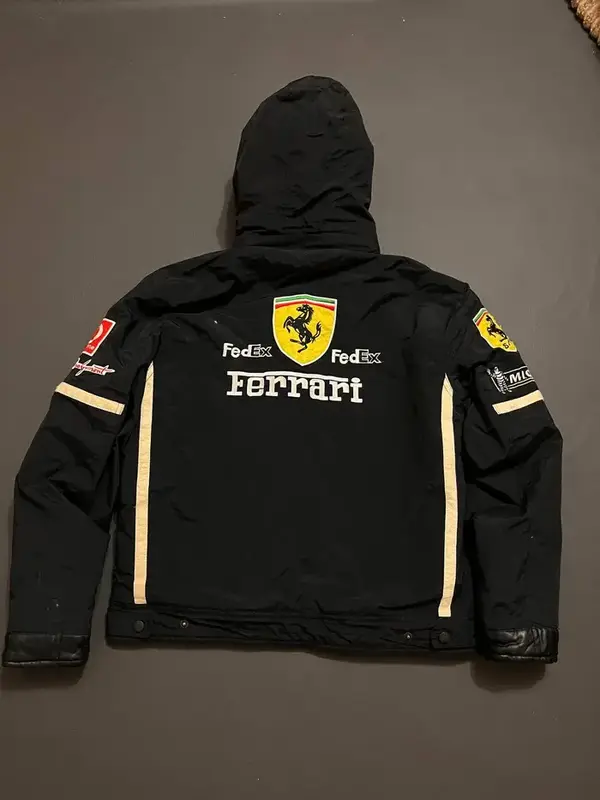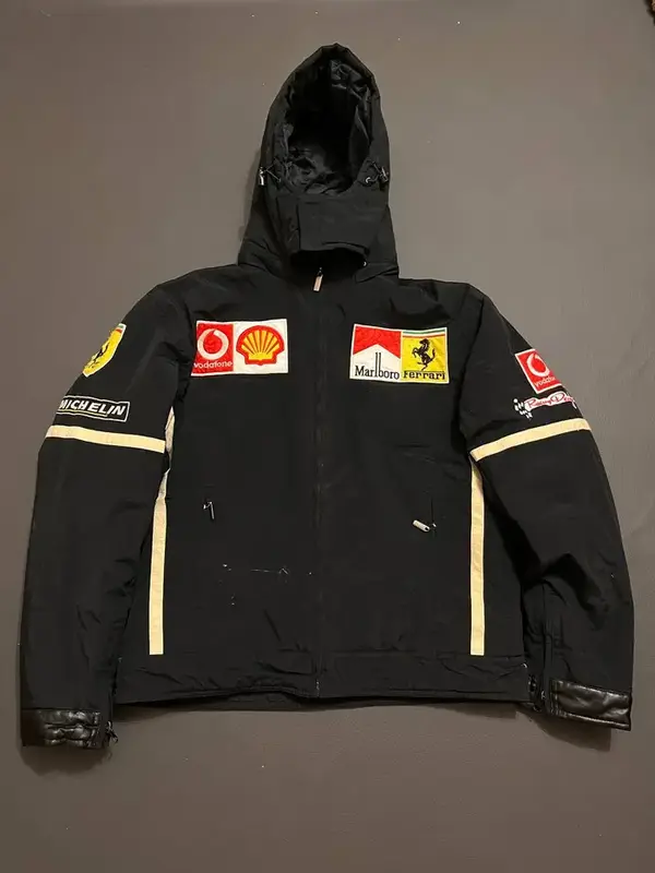 Features Built for Fans This Marlboro Ferrari F1-inspired jacket features all the logos and patches you remember from the track, including the famous Marlboro and Ferrari branding. It comes with a secure front closure and high-quality zippers that work smoothly every time. The fit is designed to be comfortable but stylish, giving you that sleek racer silhouette. It’s the perfect choice for track days, car meets, or just a casual day out.