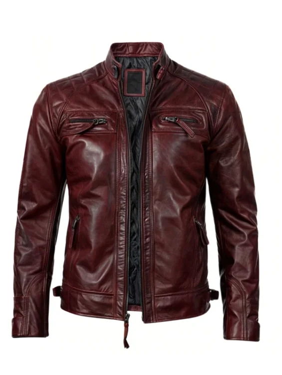 Maroon Cafe Racer Quilted Leather Jacket