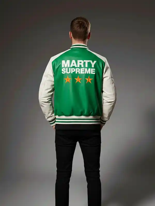Marty Supreme White and Green Varsity Leather | Marty Supreme Green Varsity Jacket