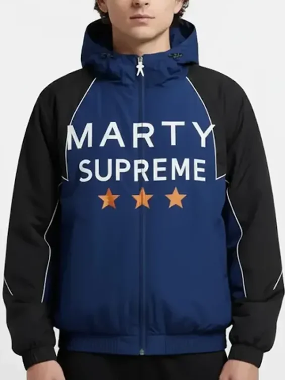 Part of the rising Marty Supreme Jackets – Viral Movie Track Jacket Colors, this hooded jacket adds a casual athletic edge to the collection. Fans can also explore the broader Movie Outfits Collection for more screen-inspired jackets built around character-driven fashion.