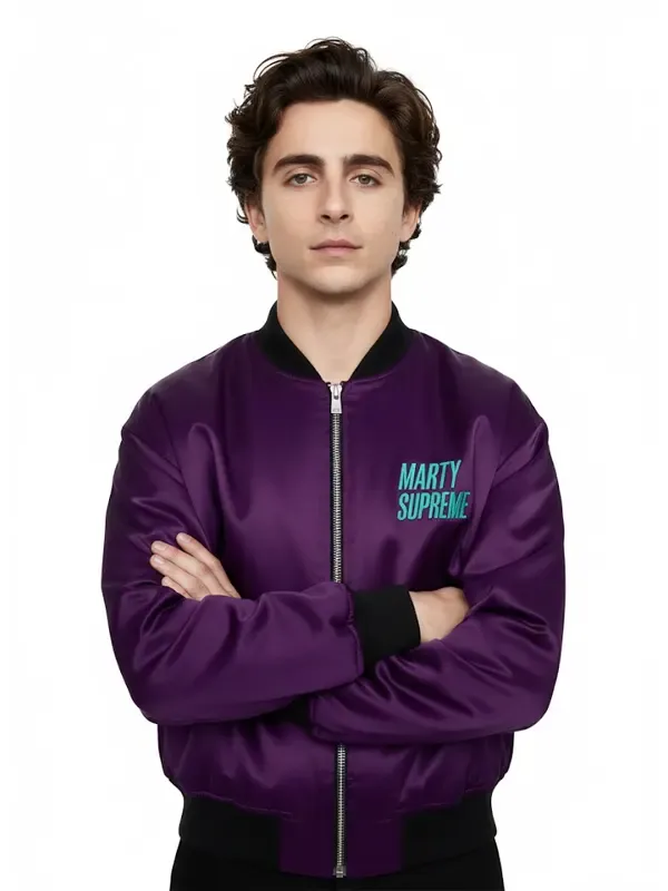 Timothee Chalamet Drama Marty Supreme Purple Satin Jacket