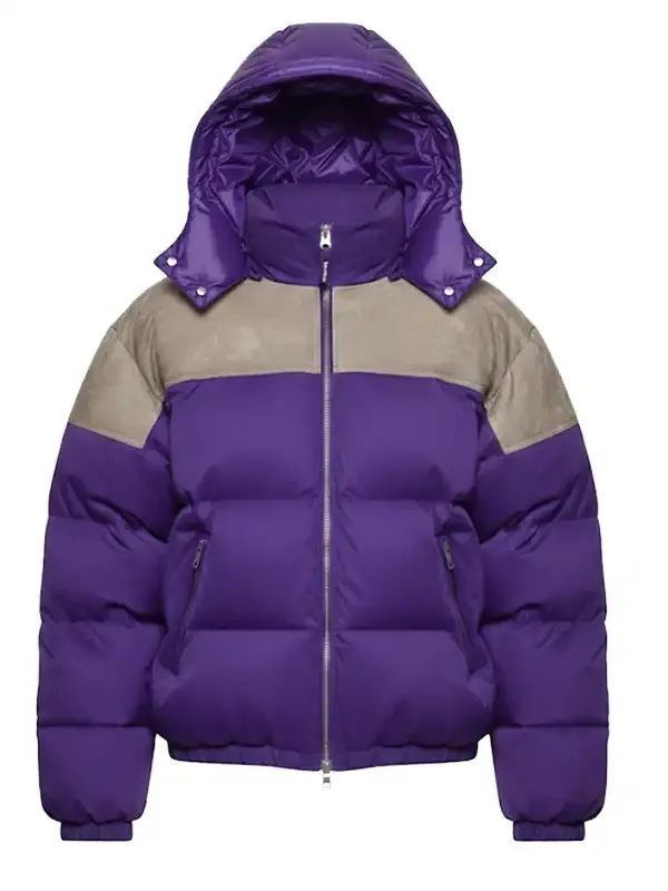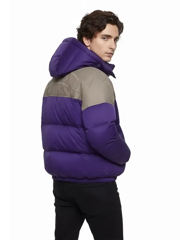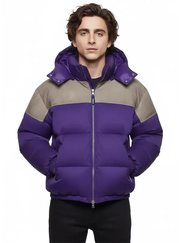 Timothée Chalamet Movie Screening Marty Purple Hooded Puffer Jacket Marty Supreme Screening Puffer Jacket