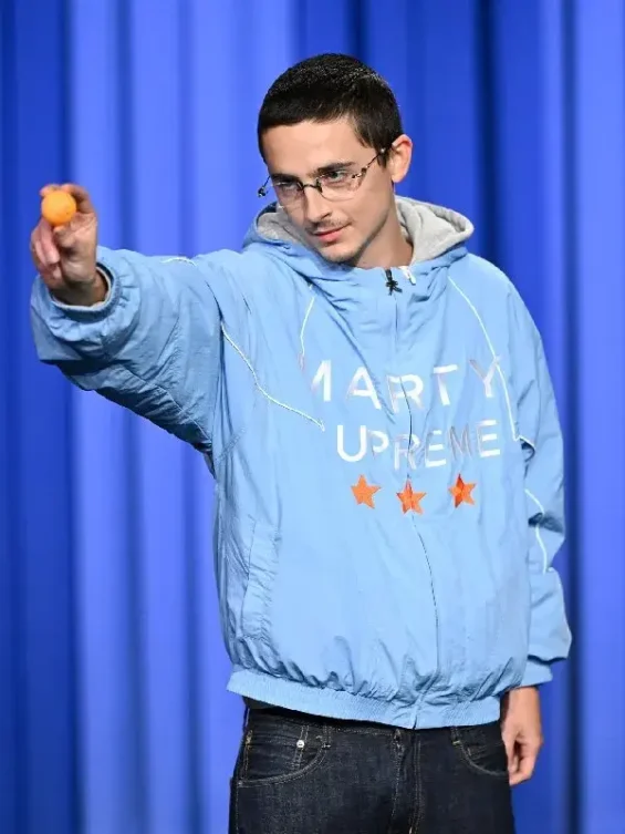 Jimmy Fallon Blue Marty Supreme Timothée Chalamet Sky Blue Hooded Jacket