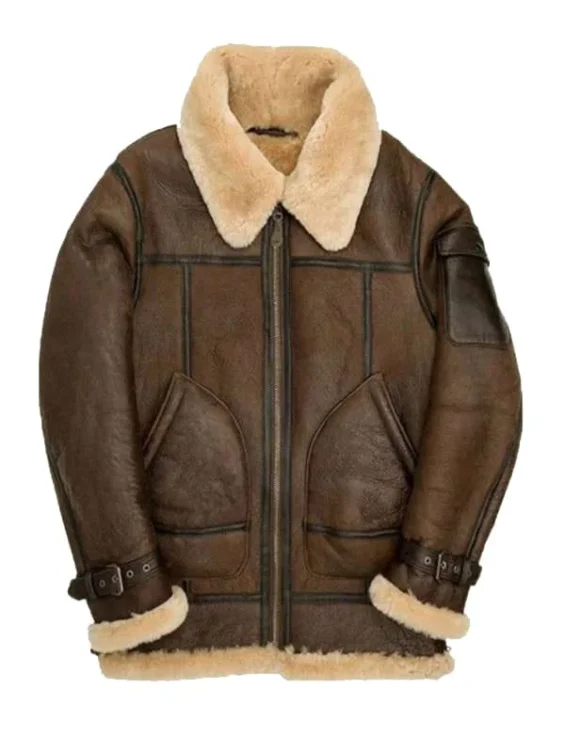 Men B3 Sheepskin Shearling Brown Pocket Jacket