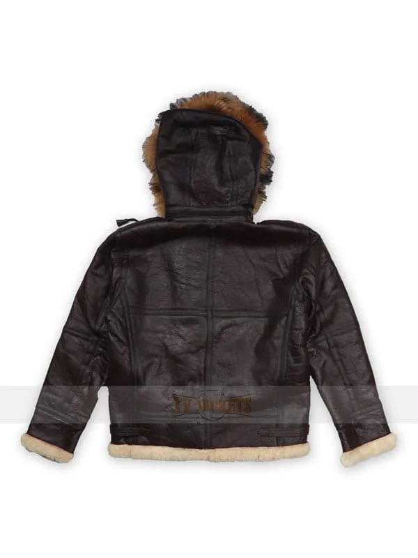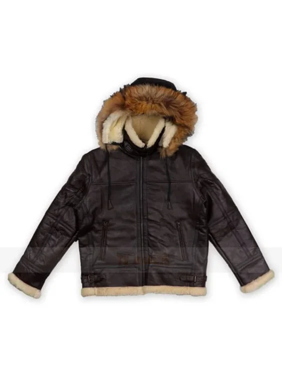 Men Dark Brown B3 Shearling Hooded Racoon Fur Jacket