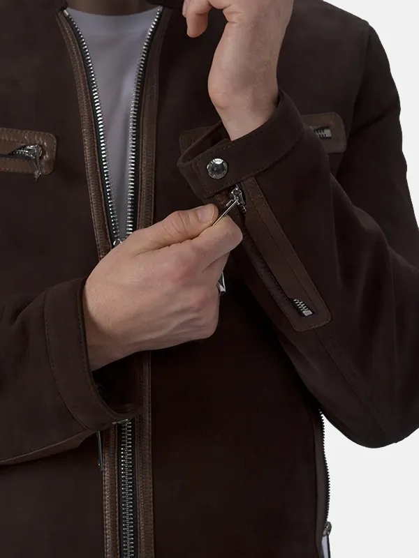 Men’s Suede Leather Brown Cafe Racer Jacket