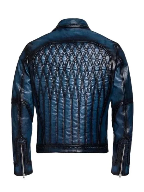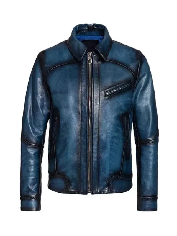 Blue Leather Bugatti Jacket For Men
