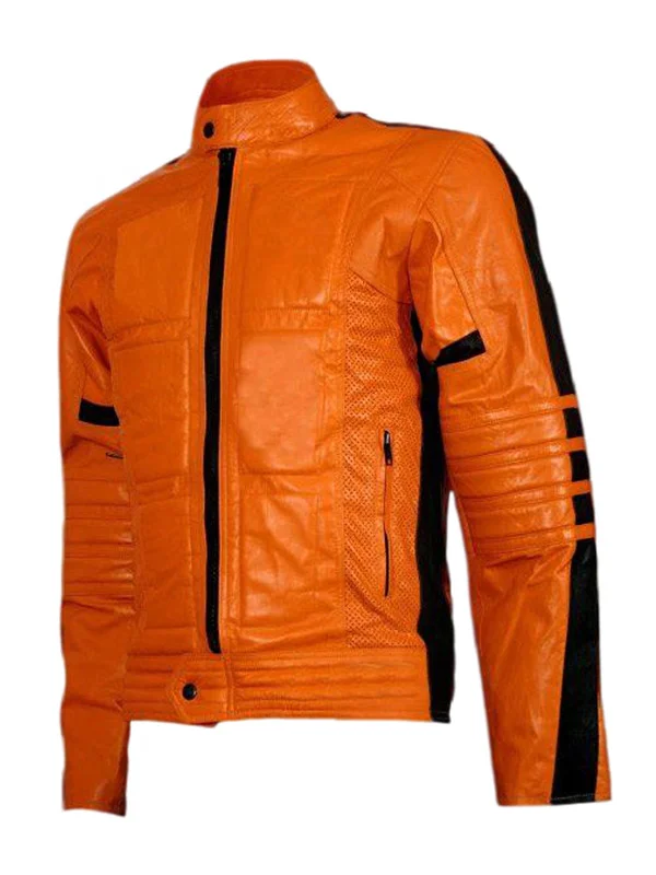 Mens Orange Biker Leather Jacket