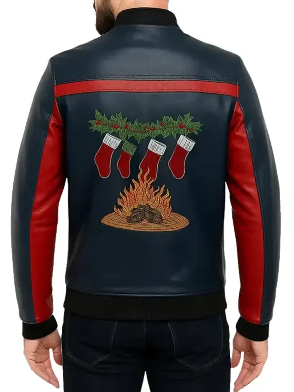 Men’s Red and Blue Christmas Leather Jacket for a Festive Winter Look