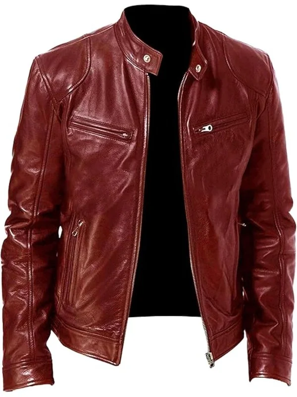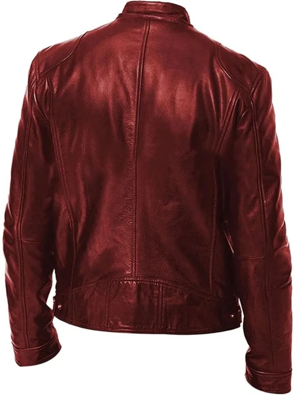 Mens Red Leather Motorcycle Jacket