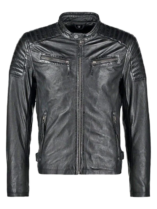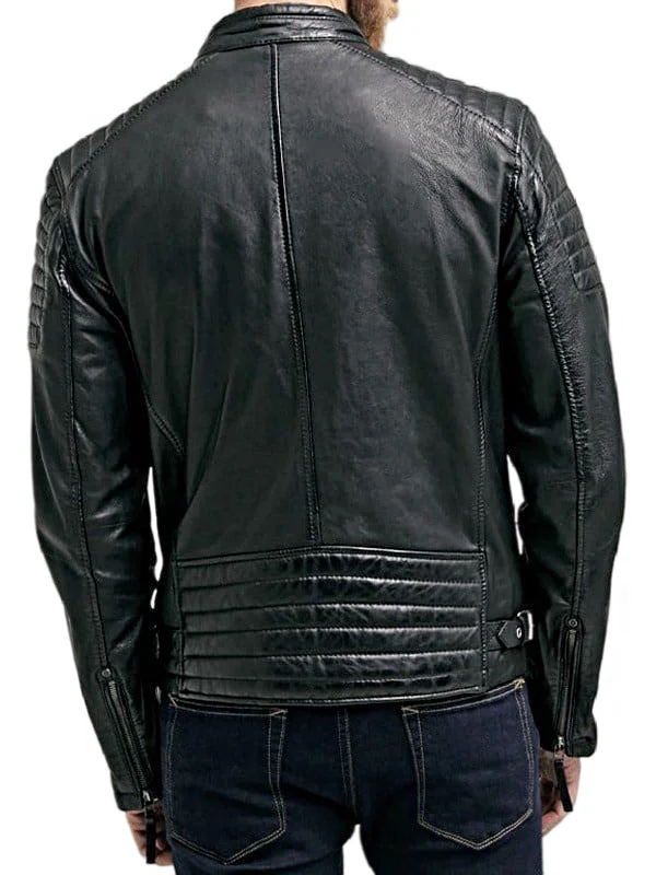 Mens Slim-fit Biker Jacket in Waxed Leather