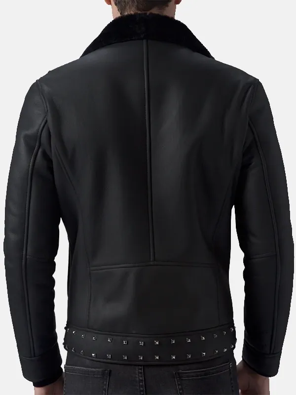 Men’s Studded Black Leather Biker Jacket